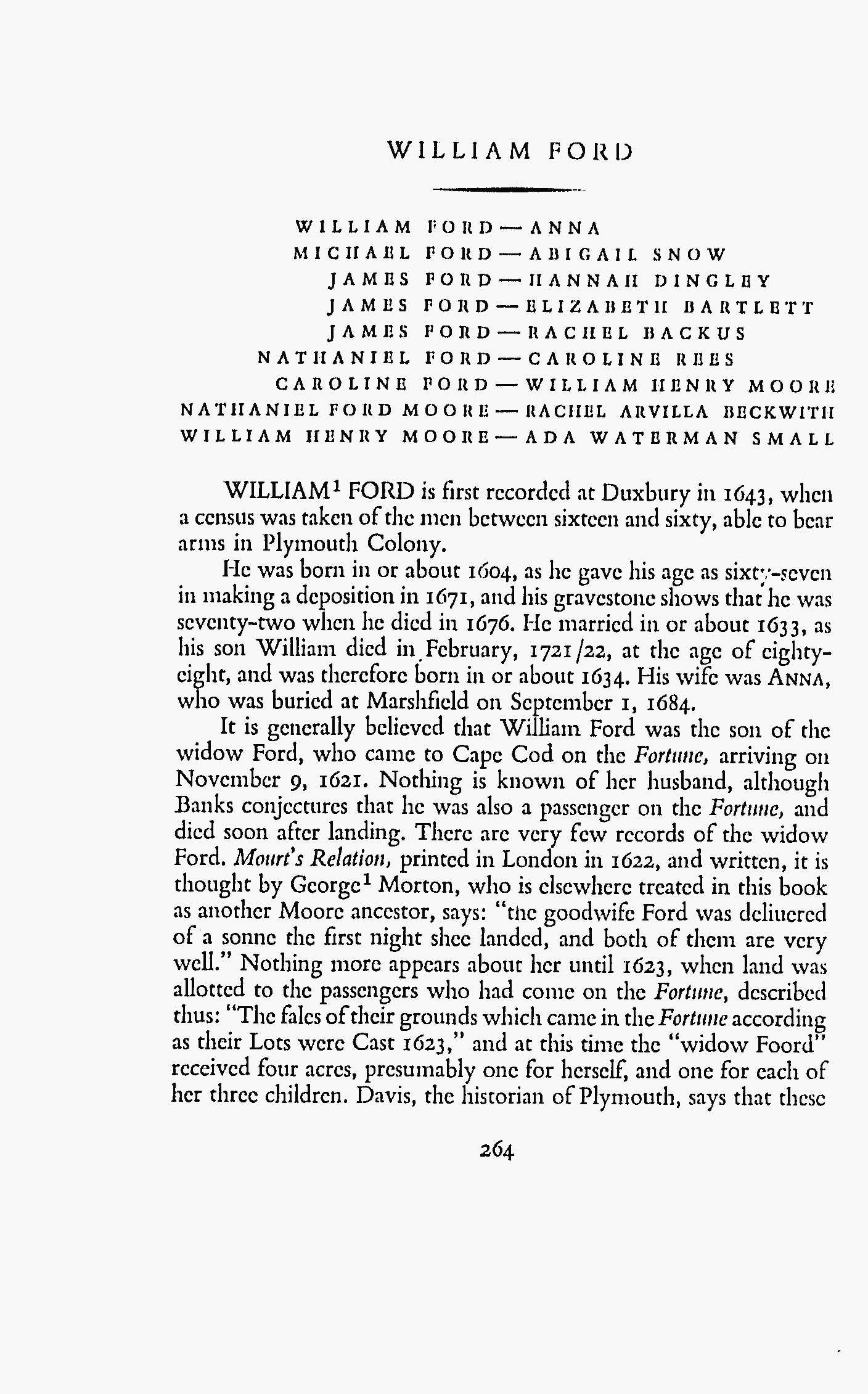 Home Surname List Name Index Sources | Pedigree Chart | 2 James Ford1,202  | 4 Michael Ford  | 8 William John Ford (Deacon) SR  | | b: 4 November 1604 in Olave Parish, Southwark, Surrey, England m: 1633 in Marshfield, Plymouth, Massachusetts, USA203 d: 23 September 1676 in Old Winslow cem., Marshfield, Ma. | | b: 1635 in Marshfield, Plymouth County, Massachusetts175 m: in Marshfield, Massachusetts d: 27 March 1729 in Marshfield, Plymouth County, Massachusetts175,204,205 | 9 Anna (Hannah) Eames | | b: 1615 in St George, Dorset, England203 d: 1 September 1684 in Marshfield, Plymouth, Massachusetts, USA | | b: 4 April 1675 in Marshfield, Plymouth County, Massachusetts, United States of America5,99,206 m: 28 February 1698 in Marshfield, Plymouth, Massachusetts206,207,208 d: 28 June 1735 in Marshfield, Plymouth, Massachusetts, United States5,205,206 | 5 Abigail Snow  | 10 Anthony Snow98,200,209,210 | | b: 7 May 1618 in England5 m: January in MA d: 31 August 1692 in Marshfield, Plymouth, Massachusetts, USA5 | | 1 Barnabas Ford96  | b: 10 March 1650 in Plymouth, Plymouth County, Massachusetts5 d: about 26 June 1682 in Marshfield, Plymouth County, Massachusetts5 | 11 Abigail Warren98,198,200,211,212,213 | | b: 1618 in Enfield, Middlesex, England5 d: 3 January 1693 in Marshfield, Plymouth, Massachusetts, USA5 | | | | b: 14 June 1713 in Marshfield, Plymouth, Massachusetts, United States5,97,98 m: UNKNOWN d: 3 September 1773 in Marshfield, Plymouth, Massachusetts, USA5,98 | 6 Jacob Dingley | 12 John Dingley214  | | b: 1608 in Charlton, Worcestershire, England m: 1636 in Marshfield, Plymouth, Massachusetts, United States d: 1 July 1658 in Marshfield, Plymouth, MA | | 3 Hannah Dingley1,202  | b: 1642 in Sandwich, Barnstable County, Massachusetts, United States of America5,200,206,215 m: 1666 in Marlborough, Middlesex, Massachusetts, USA1 d: 18 August 1691 in Marshfield, Plymouth, Massachusetts, USA5,99,200,202,206,207,215 | 13 Sarah Chillingworth | | b: about 1611 in Banbury, Oxfordshire, England d: 1 November 1679 in Marshfield, Plymouth, Massachusetts, United States | | b: 28 May 1675 in Marshfield, Plymouth County, Massachusetts, United States of America5,99,175,200,215 d: 14 January 1746 in Marshfield, Plymouth, Massachusetts, USA5,175,200,206 | 7 Elizabeth Newton | 14 Richard Newton IV214  | | b: 9 April 1609 in Bures St Mary, Suffolk, England5,175 m: in of MA d: 24 August 1701 in Marlborough, Middlesex, Massachusetts, United States5,175 | | b: 1650 in Sudbury, Middlesex, Massachusetts, USA5,206,215 d: 30 March 1718 in Marshfield, Plymouth, Massachusetts, USA5,99,200,207,215,216 | 15 Anne Hannah Loker  | | b: 1 August 1605 in Bures Saint Mary, Suffolk, , England d: 5 December 1697 in Marlborough, Middlesex, Massachusetts, United States | |